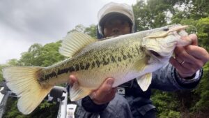 【2025年春・入鹿池での実績】 この「馴染みの良さ」が正解であることを証明してくれたのが、2025年春の入鹿池でした。 気難しいビッグバスを相手に、私が選択したのはギルグリーン。鹿革の生々しい存在感が、セレクティブなデカバスに迷いなく口を使わせ、55cmのグッドサイズを連れてきてくれました。
